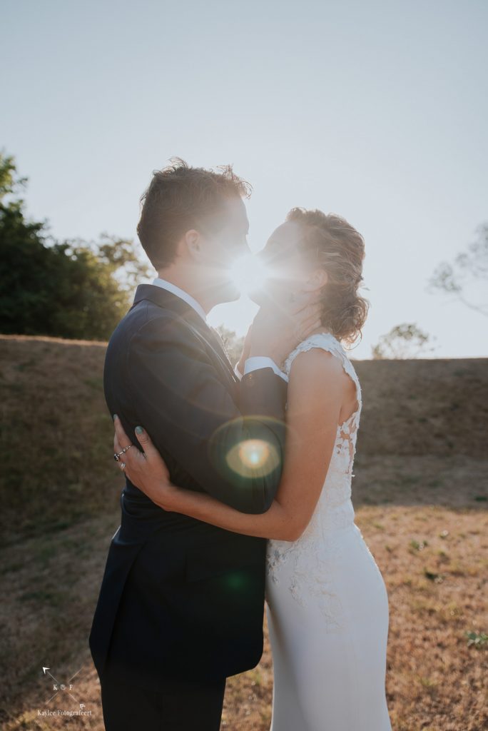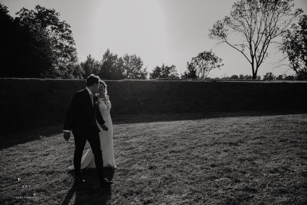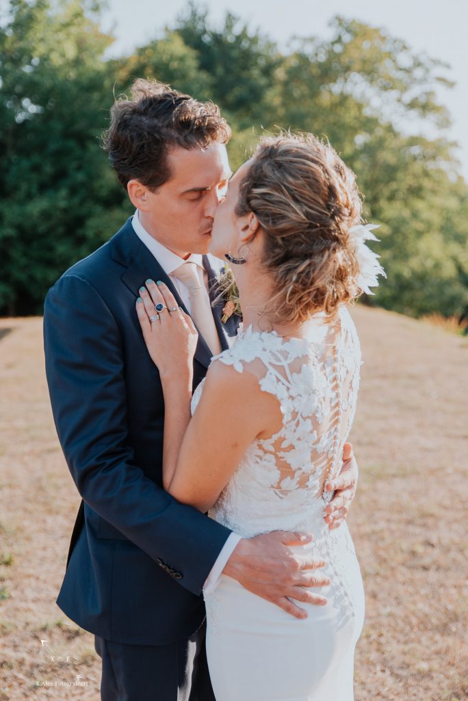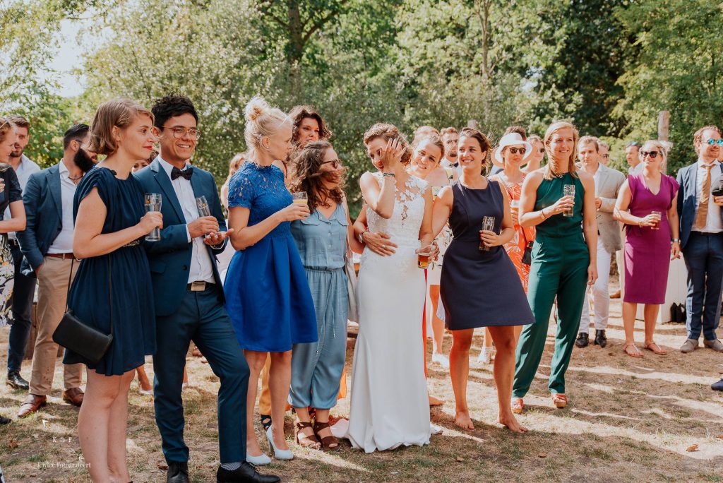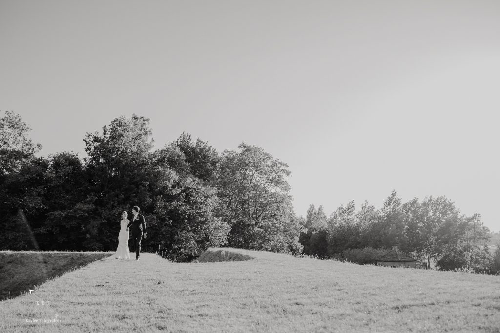 Aan het einde van de ceremonie maakte de regen plaats voor zon en daardoor kon er op het gras uitgebreid geborreld en getoost worden. Een prachtige middag in de zon waarbij je je amper kon voorstellen dat het even daarvoor zo hard geregend heeft. De borrel sloot naadloos aan op het diner, waarna wij met M&E nog een aantal foto’s hebben gemaakt met het gouden uur…