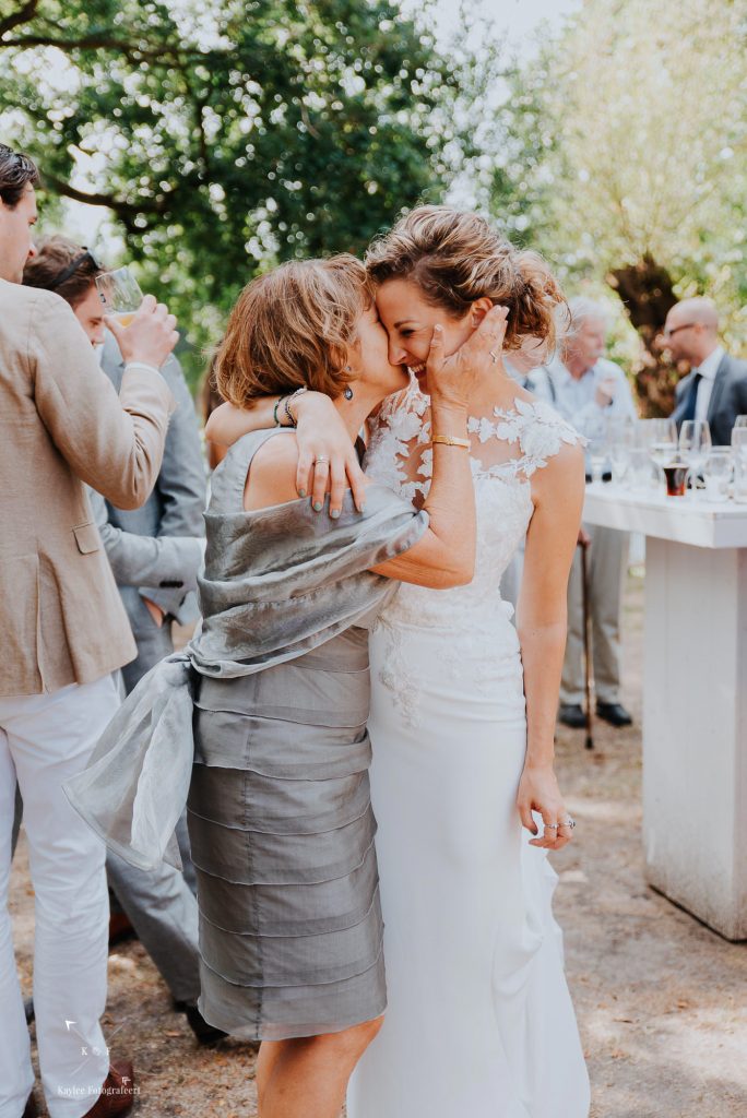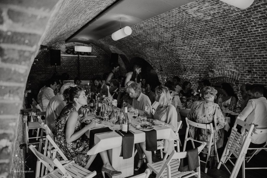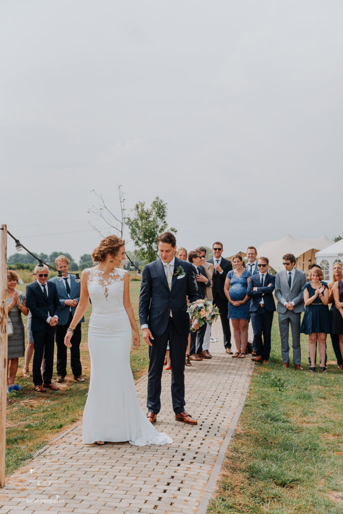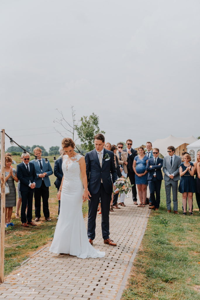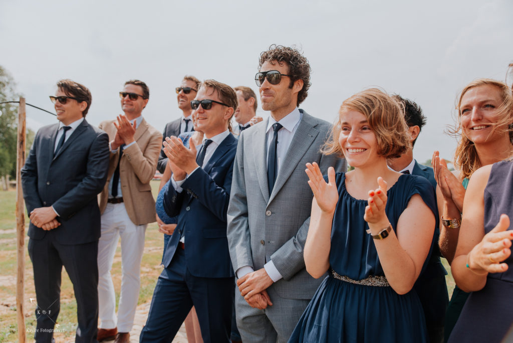 Aan het einde van de ceremonie maakte de regen plaats voor zon en daardoor kon er op het gras uitgebreid geborreld en getoost worden. Een prachtige middag in de zon waarbij je je amper kon voorstellen dat het even daarvoor zo hard geregend heeft. De borrel sloot naadloos aan op het diner, waarna wij met M&E nog een aantal foto’s hebben gemaakt met het gouden uur…