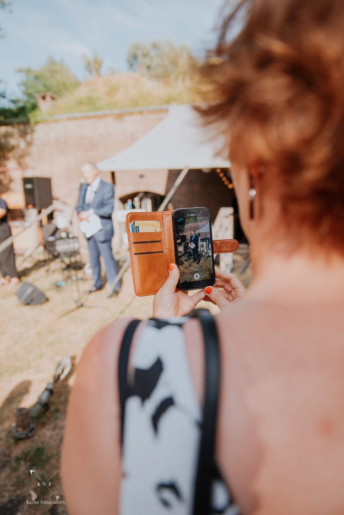 Na 15 minuten wachten trok de regen weg en konden we rustig naar de fotolocatie lopen om foto’s te maken. Binnen in het fort was het heerlijk koel en aangenaam. Eenmaal buiten brak de zon door en was het eigenlijk direct weer heet. Toch was besloten de ceremonie overkapt te houden en dat was maar goed ook; tijdens de ceremonie regende het opnieuw. Wat zeg ik? Het hoosde.