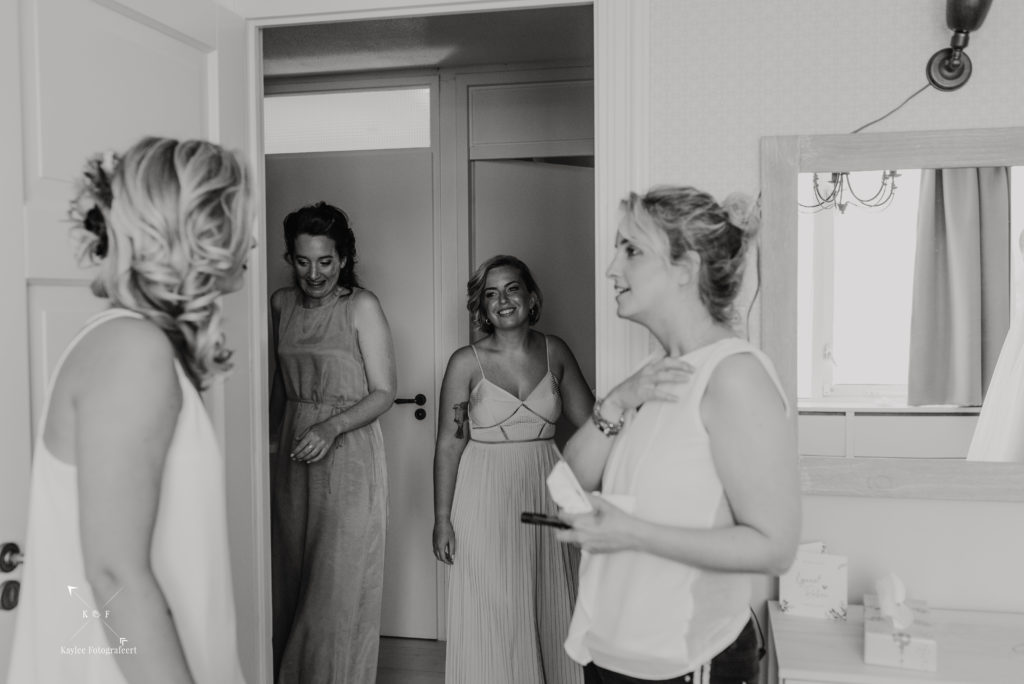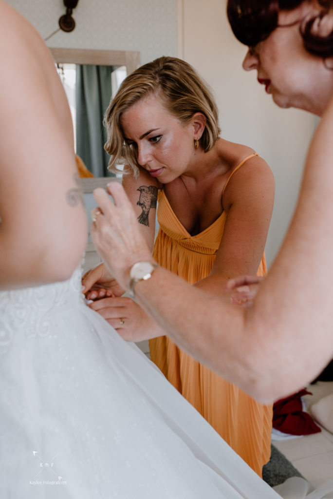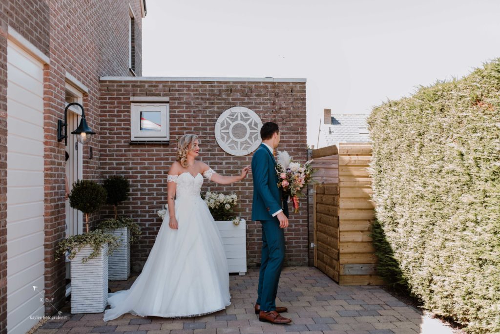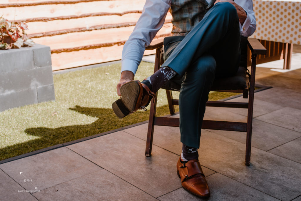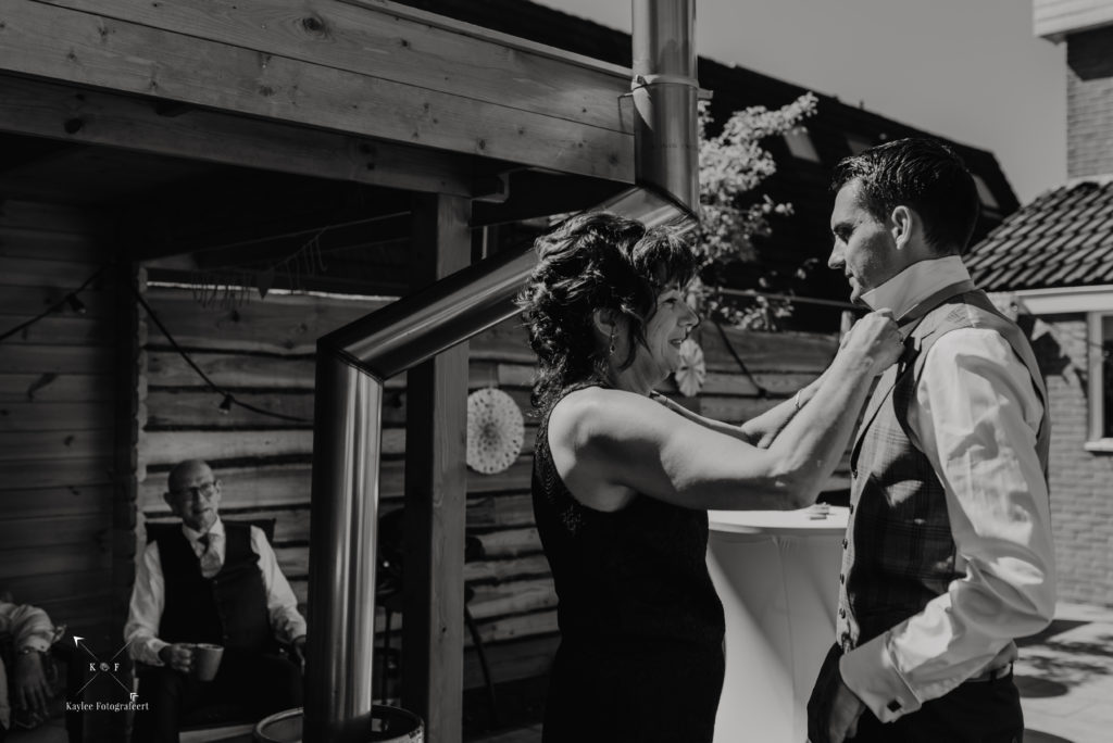 Mijn dag begon bij de bruidegom, waar het een gezellige drukte was. Papa, mama, tante, oom, zussen, aanhang: iedereen leek zich al te hebben verzameld in het huis van Lynnet en Ruben in Hoorn, waar Ruben zijn pak aantrok.