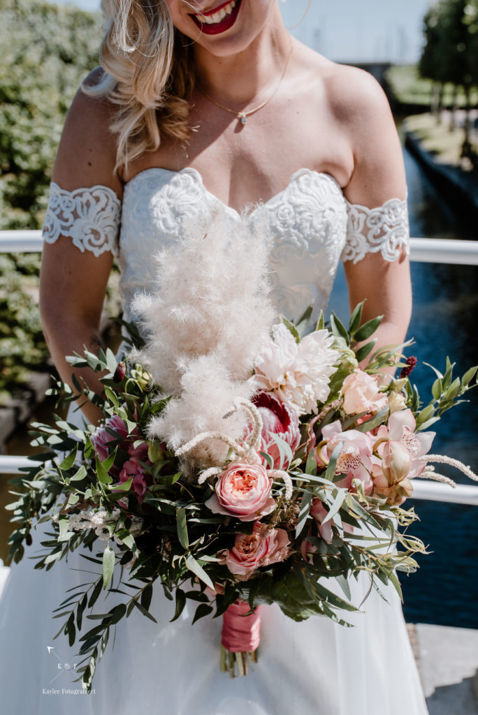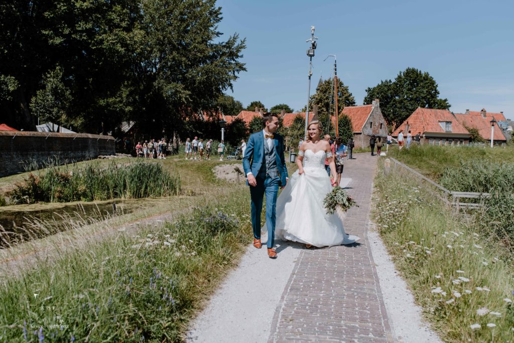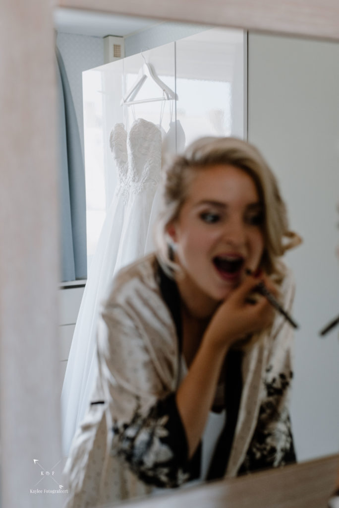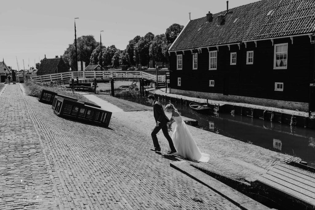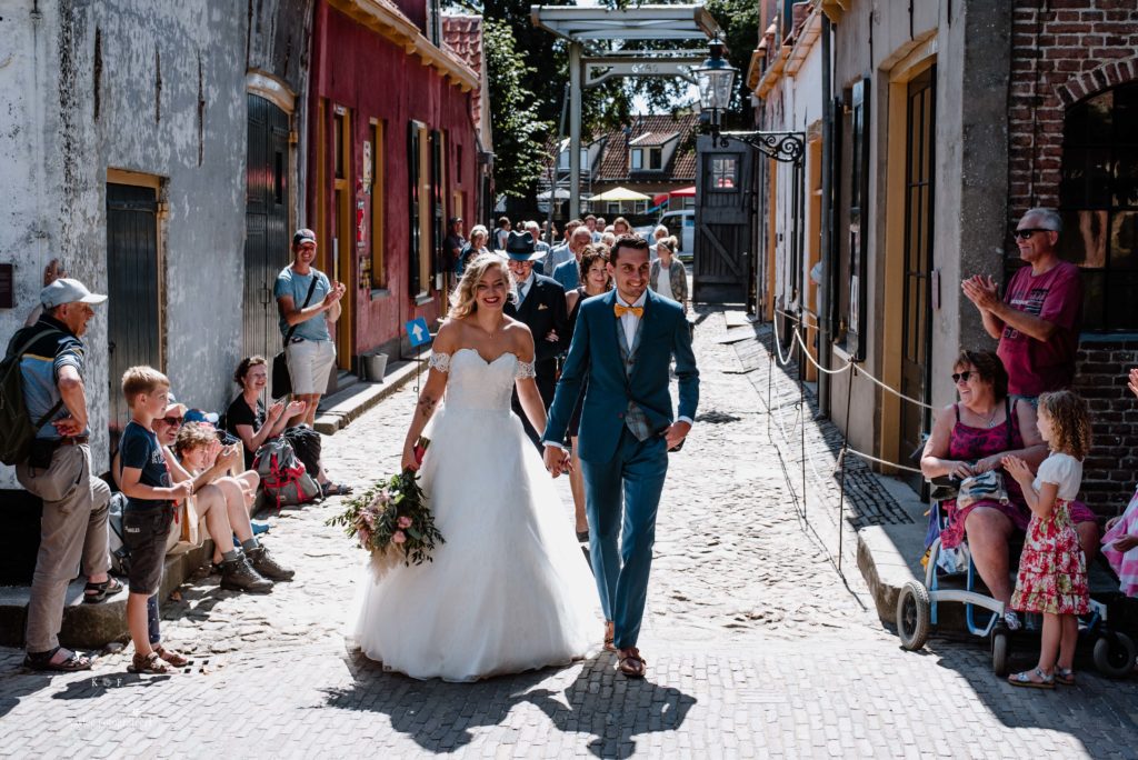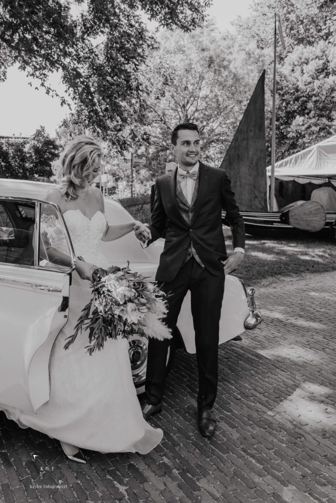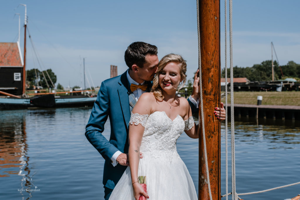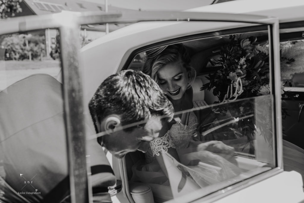 Met tijd te kort en veel te doen, was het tijd om de trouwjurk aan te trekken en de final touch aan de makeup te doen. Er was supergoed nagedacht over alle details en het was zo’n feestje om dat te mogen vastleggen, dat ik bijna vergat dat het niet alleen daar om gaat 😉 Nadat Ruben Lynnet kwam ophalen in een poepiechique Rolls Royce als trouwauto, vertrokken we naar het Zuiderzeemuseum in Enkhuizen. De temperatuurmeter in mijn auto was inmiddels de 30 graden gepasseerd en het was dan ook enorm warm. Gelukkig is het Zuiderzeemuseum aan het water (je zou het niet zeggen..) en had ik van te voren flink wat flesjes water meegenomen zodat niemand zou uitdrogen. Na wat toffe foto’s al lopend door het museum heen, was het tijd voor het ja-woord!