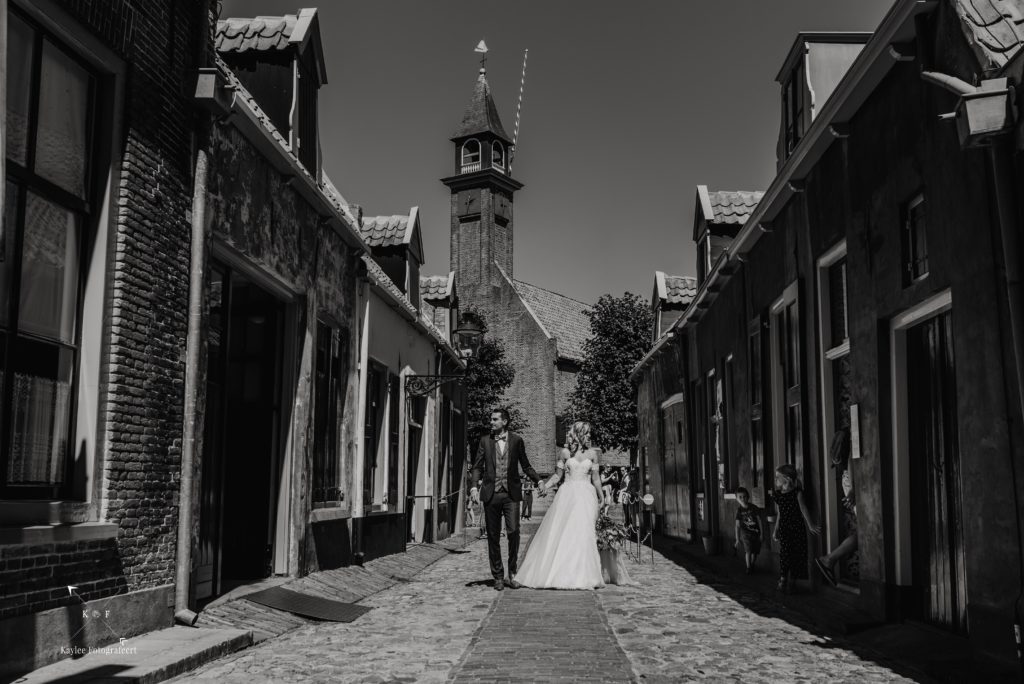 Midden in het Zuiderzeemuseum (het is deels een openlucht museum) staat een heel schattig kerkje die ook beschikbaar is voor trouwceremonies. En terwijl de bruid en bruidegom onder toeziend oog van de bezoekers naar binnen lopen voor de ceremonie, luiden de medewerkers de kerkklokken. Love it!