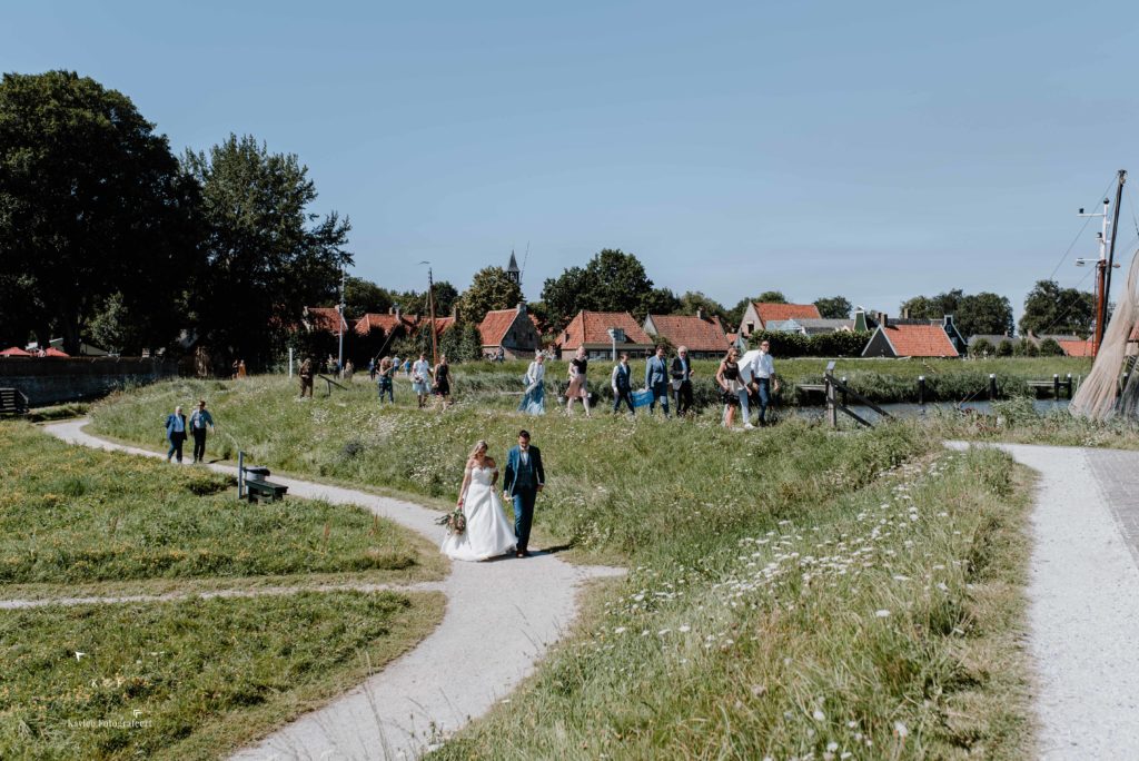 Na het ja-woord was het tijd om te hydrateren met een borrel en een stukje bruidstaart. Net buiten de museummuren, staat een huis waar men kan dineren aan lange tafels en borrelen op de binnenplaats (of binnen). Het Peperhuis is een oud monument dat ook onderdeel is van het Zuiderzeemuseum. Het was nog steeds zo warm, dat de borrel naar buiten verplaatste en de mensen daar hun verkoeling zochten samen met hun drankje.