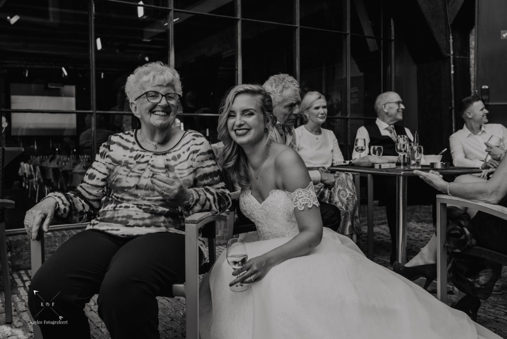 Hier sloten ze hun bijzondere en liefdevolle dag omringd door alle bruidsgasten: familie, vrienden, kennissen. Allemaal deelden ze een ding: de liefde voor de bruid en bruidegom. En met die voelbare liefde, sloot ik de dag af met een grote glimlach. Wat een dag.