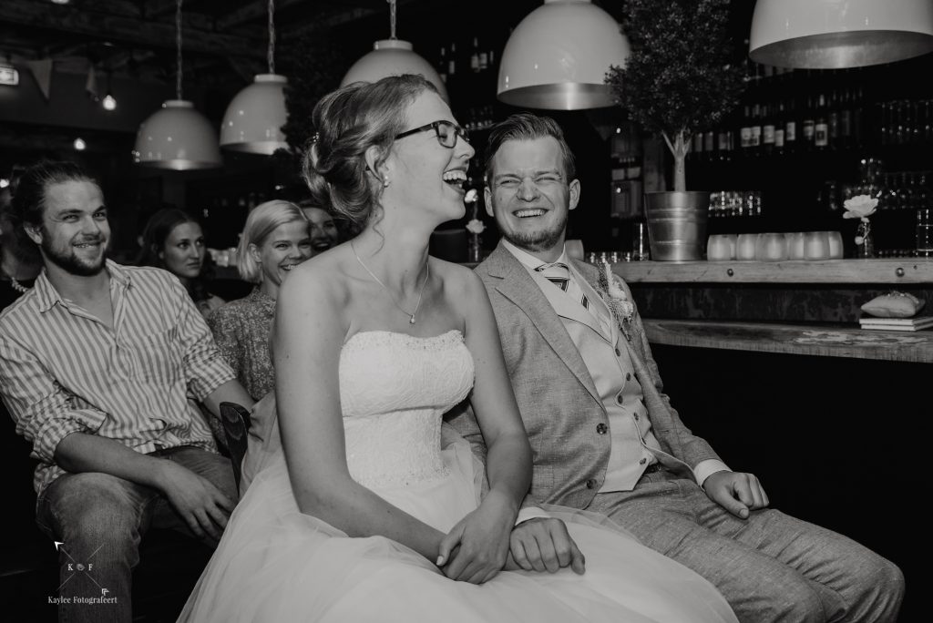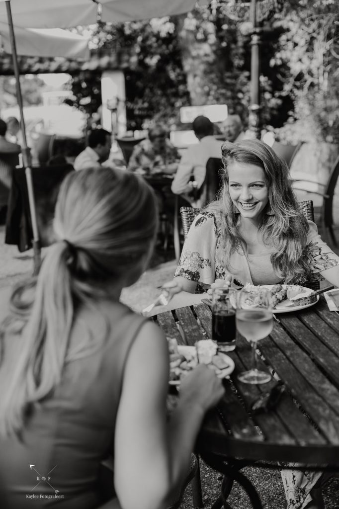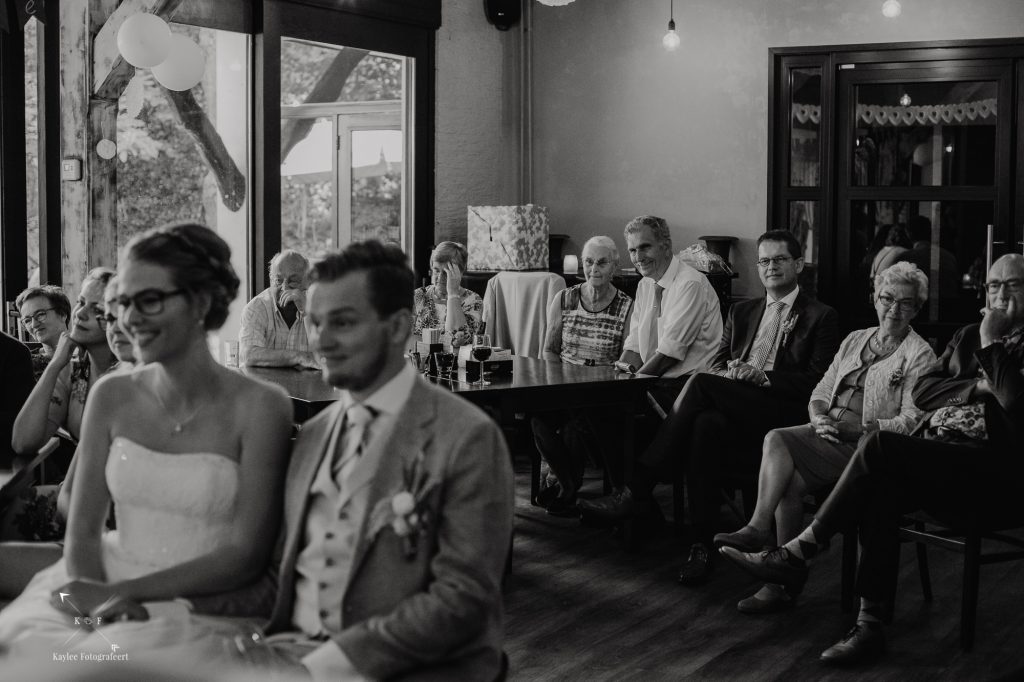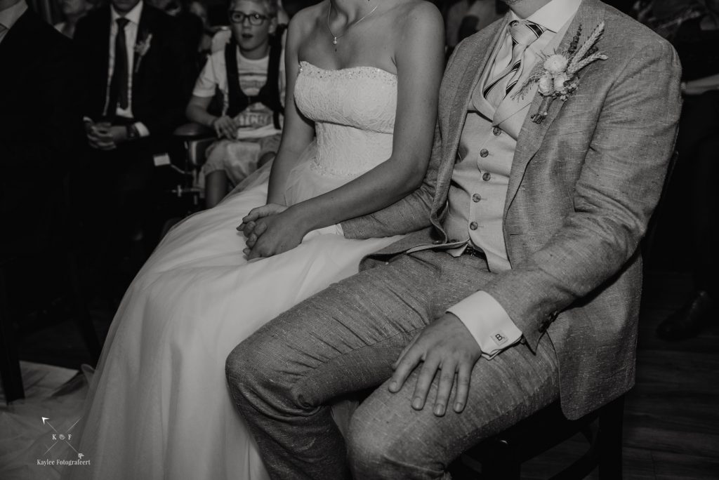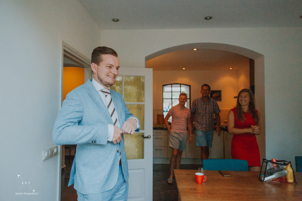 Toen de first look en de fotoshoot erop zaten, was het tijd om terug te gaan naar het ouderlijk huis van Benthe, waar alle daggasten ons stonden op te wachten en we onder het genot van een high tea/lunch een aantal stukjes te zien kregen.