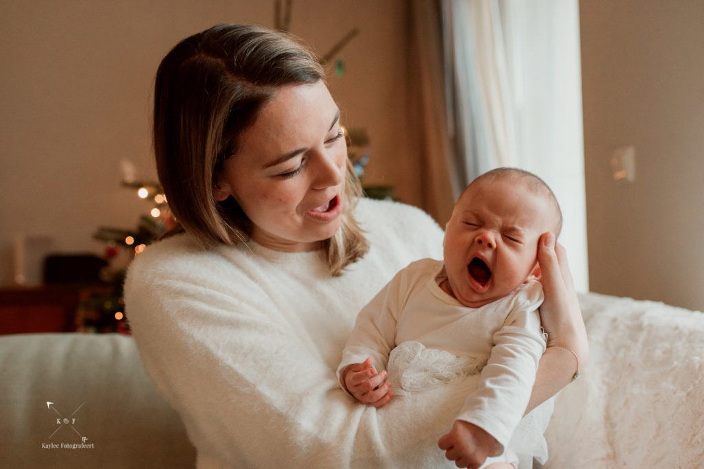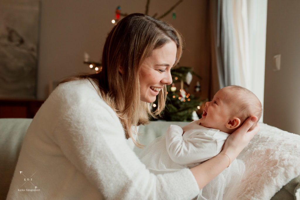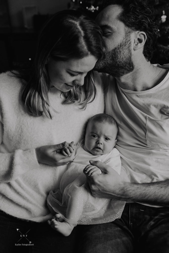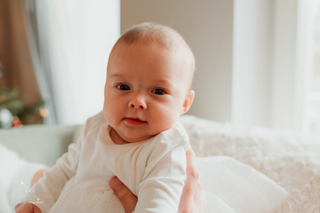21 December. Nog 4 dagen en kerst staat voor de deur. In de huizen staan versierde kerstbomen, voor de ramen en deuren hangen kerstkranzen. Ik ben onderweg naar een familie met een baby van 10 weken luisterend naar de naam Hannah. Officieel is het dan niet echt een newbornshoot meer en aangezien ik nog nooit een baby ouder dan 4 weken had gefotografeerd, vond ik het stiekem nog best spannend!