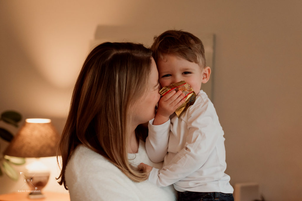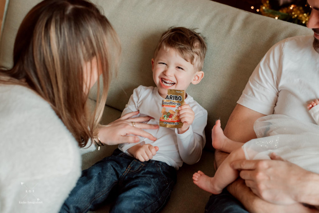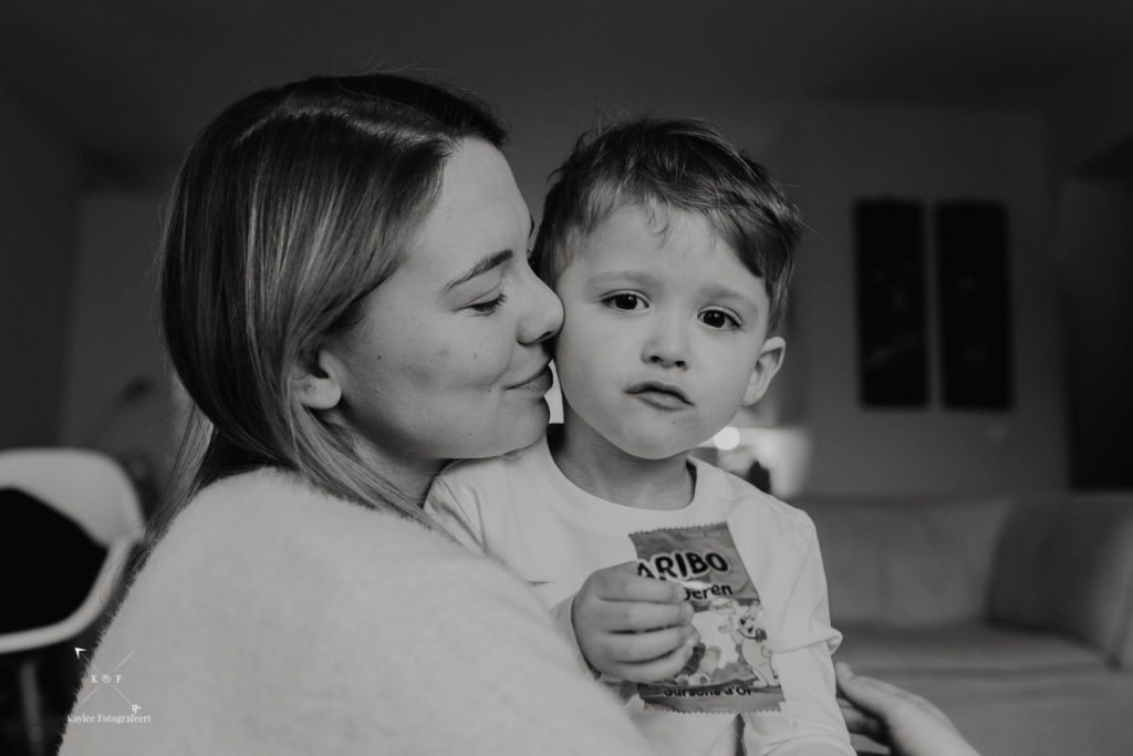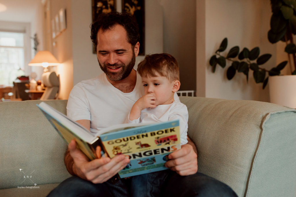 Eenmaal aangekomen in Amsterdam had ik een cadeautje bij me voor het broertje van Hannah. Ik kom zelf uit een familie met enorm veel neefjes en nichtjes en ik weet nog goed hoe kinderen moeten wennen wanneer ze niet meer de aandacht voor zichzelf krijgen. Daarom nam ik voor Micah een boekje mee over Kikker. Toen hij dat zag, wilde hij gelijk voorgelezen worden. Dat gaf mij tijd om een beetje om me heen te kijken en te bedenken wat voor foto’s ik zou kunnen maken. Als ik ergens binnenkom, probeer ik eerst de sfeer aan te voelen. Even rustig zitten en kennismaken: het hoort er wat mij betreft bij. Als fotograaf mag ik een kijkje nemen in het leven van mensen en dat wil ik dan ook zo goed mogelijk vastleggen, zonder mij te hoeven haasten.
